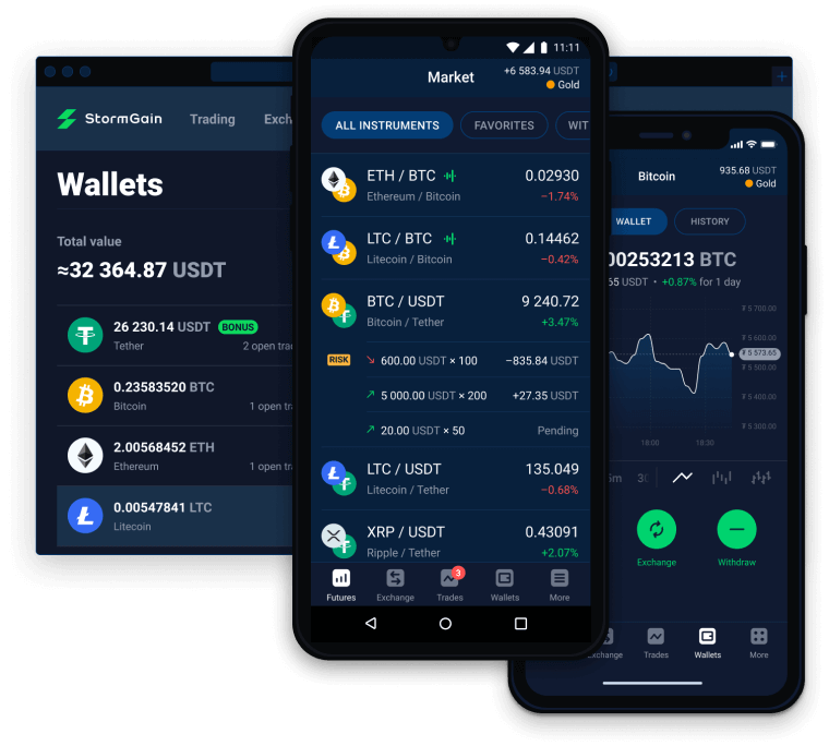 StormGain is a crypto trading platform for everyone. It is a convenient solution for those who want to profit from either the growth or decline of the cryptocurrency market and from long-term investments in crypto assets.